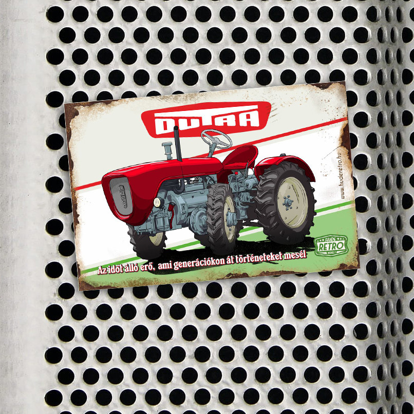 Tisztelegj a legendás Dutra UE-28 előtt ezzel az egyedi retro fémtáblával, amely az időtálló erőt és a magyar mérnöki hagyományokat idézi meg!